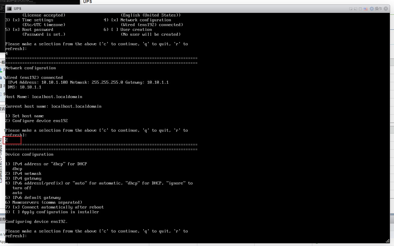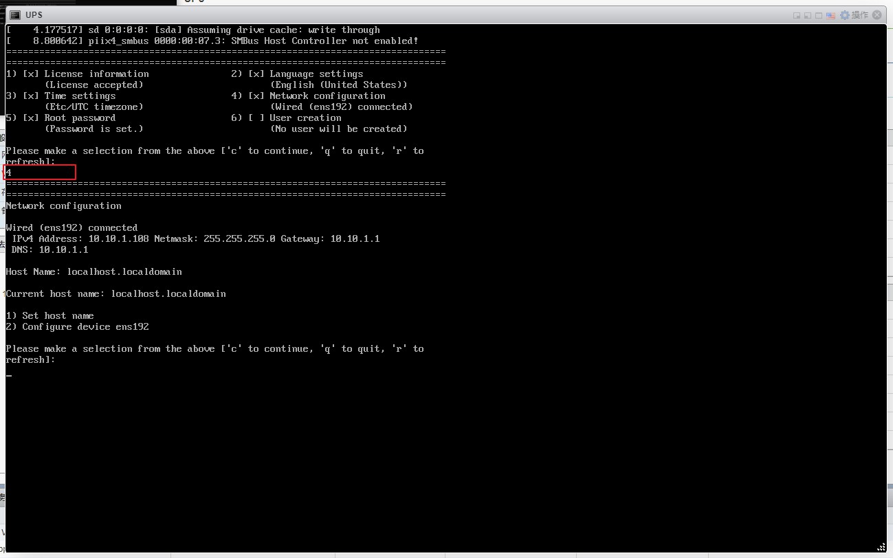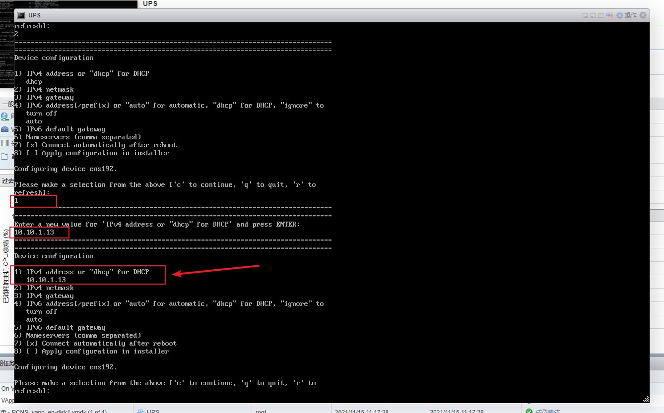 10、然后回到VMware ESXI的虚拟机页面,打开UPS的VM窗口,先设置一个静态IP地址,按4,然后回车即可选择网络配置。