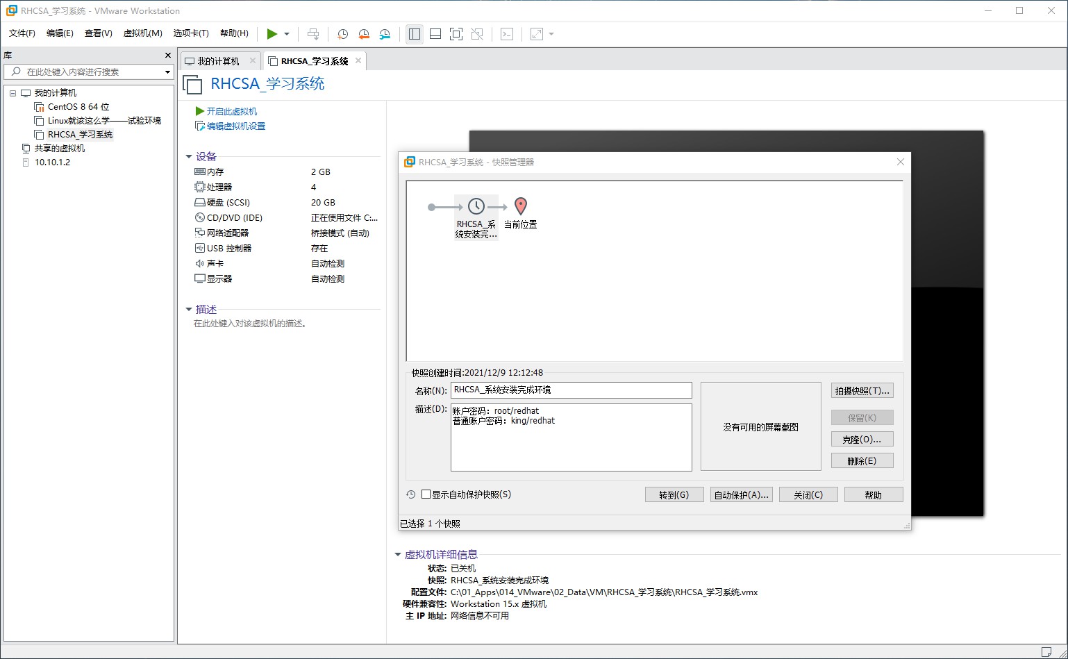 Tip:创建好快照方便后续快速恢复到初始化系统,节约时间。