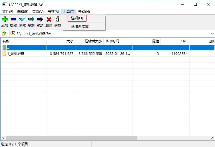 2-1.首先打开7-Zip程序,选【工具】下的【选项】