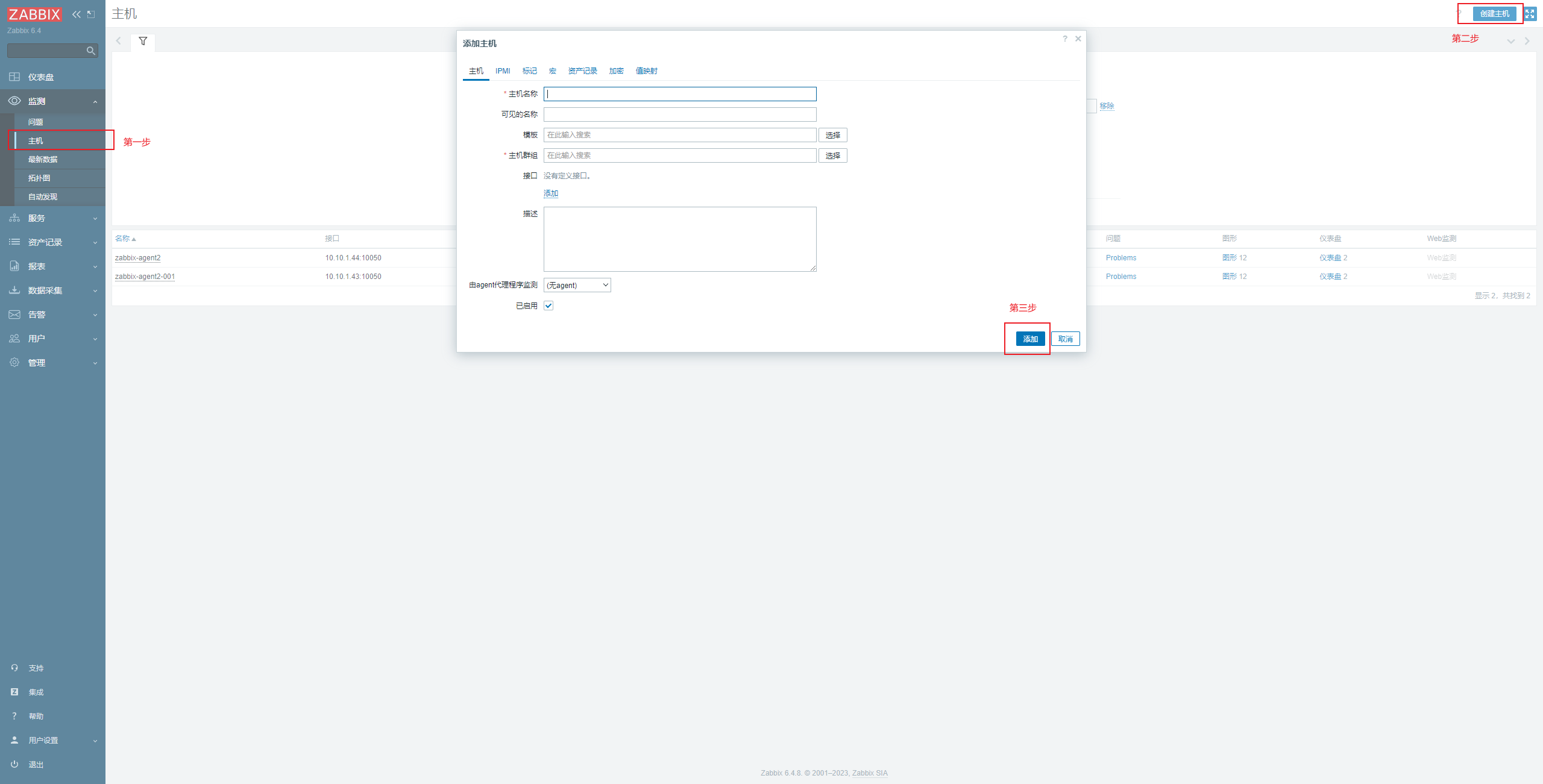 2.添加agent2主机监控节点: