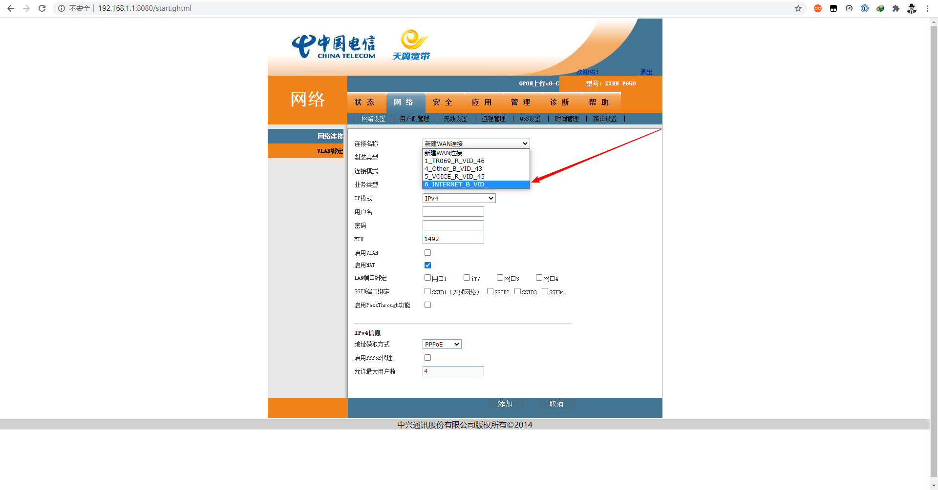光猫型号:ZTE中兴 ZXHN F650 (需要超级管理员账户登录)