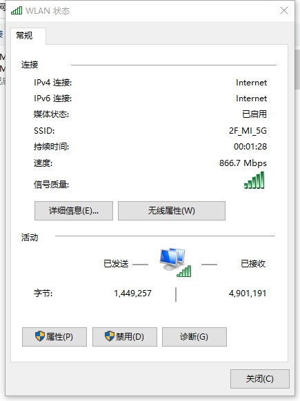 - 看见IPv4和IPv6全部显示Internet,则连接上了